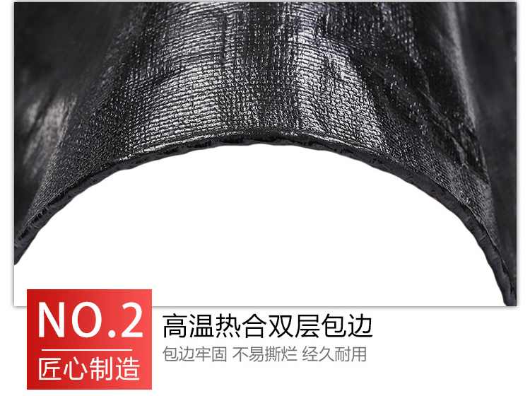 雙黑色PE防水篷布高溫熱合雙層包邊:包邊牢固,不易撕爛,經久耐用。